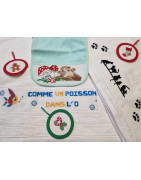 - Broderies artisanales : Serviettes, bavoirs et accessoires brodés au point de croix pour petits et grands.