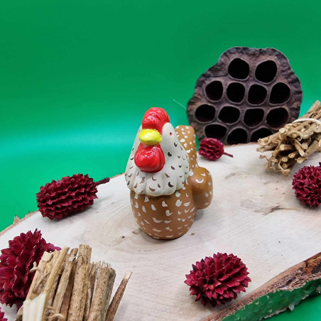 Idéale pour une décoration de cuisine, de table ou une ambiance ferme et nature, cette figurine artisanale s’intègre parfaitement dans tout type d’intérieur. Que ce soit pour un cadeau original ou pour enrichir votre collection d'objets décoratifs, cette poule saura séduire par son charme et son réalisme.