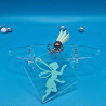 Ces porte-clés sont en acrylique transparent, ornés de la silhouette d'une fée colorée.. Ils sont complétés par un pompon assorti attaché à un anneau métallique.