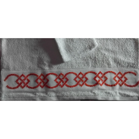Cette serviette de toilette en coton éponge est ornée d'une magnifique broderie de motifs celtiques. Les nuances d'orange apportent une touche de chaleur et de lumière à votre salle de bain. Un voyage en Irlande, rien qu'en vous essuyant !